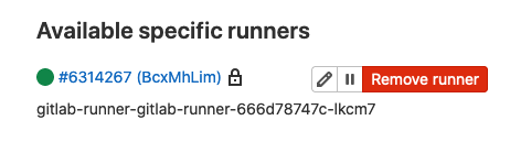 Une fois déployé, patientez quelques instants et retournez sur l'écran Runners de votre projet GitLab. Le runner devrait apparaître avec un indicateur vert :