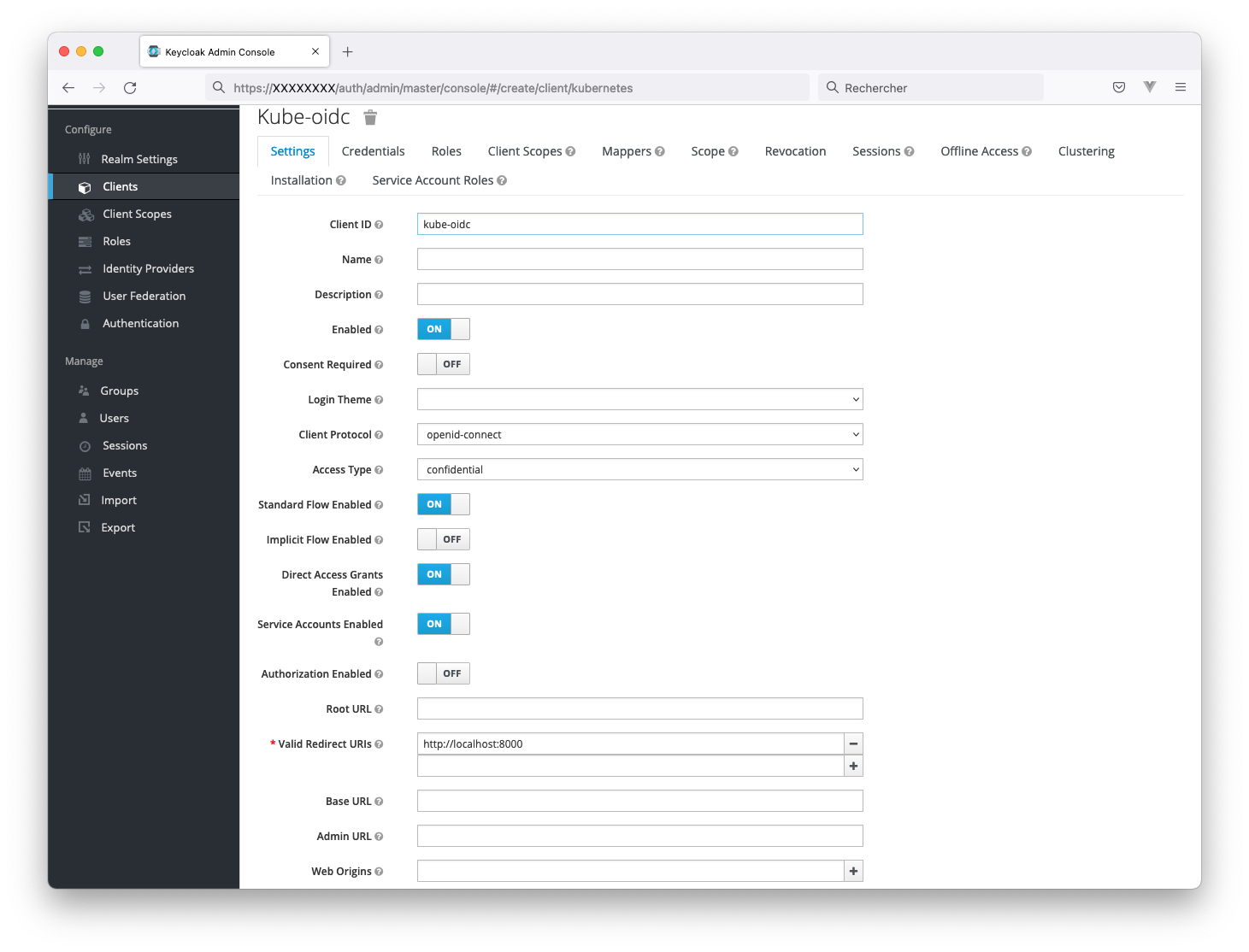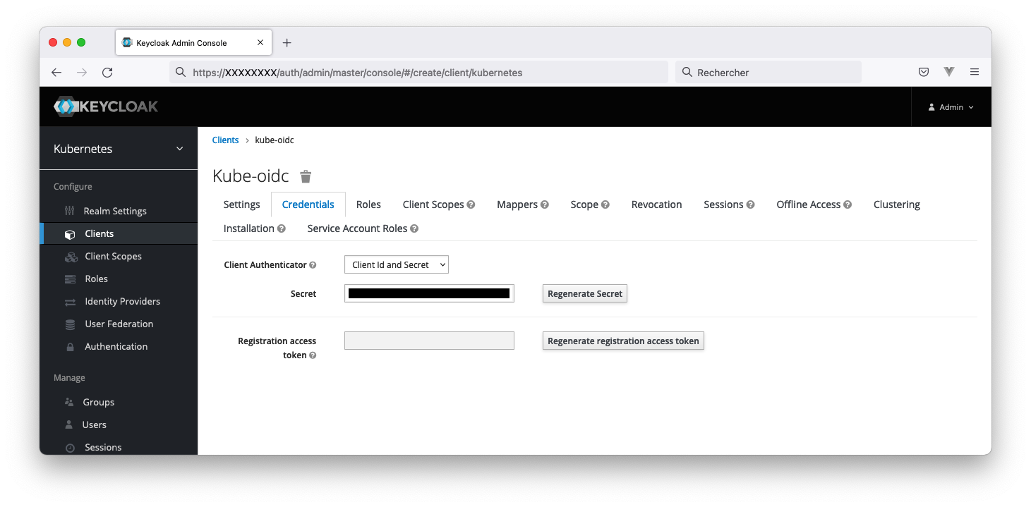 | Client ID | kube-oidc | Identifiant unique du client (personnalisable) |