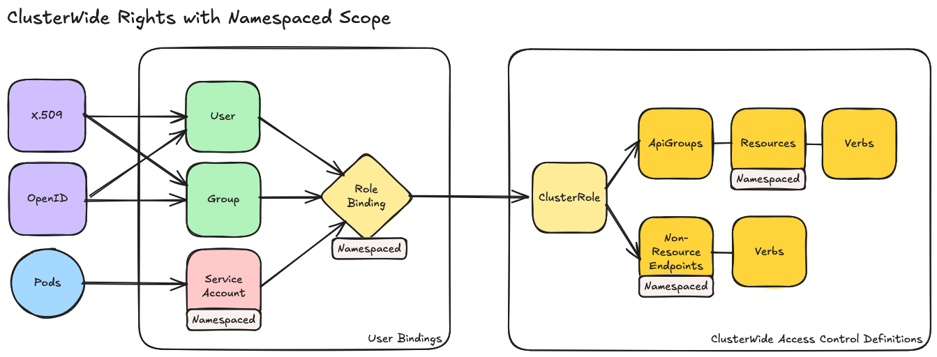 Préférez les RoleBindings même avec des ClusterRoles pour limiter la portée :
